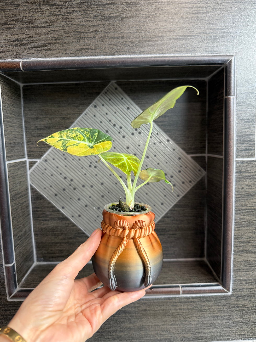 Adding a cute and lucky pot to intensify the plant beauty.